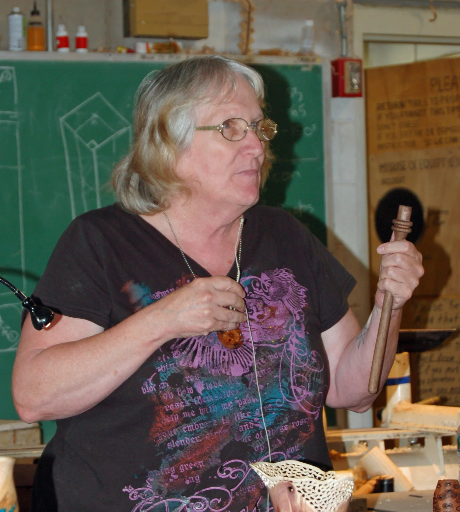 Here is a Celtic Knot taken to a new level! Joyce McCullough created a box top that is a 3 dimensional knot. And with some encouragement from Linford Sine, that knot became a snake. Click through the slideshow to see other examples of how Joyce takes an idea and makes it uniquely her own.